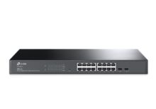 Switch administrable TP-LINK 16 Ports – avec 2 emplacements SFP – Alimentation: 100-240 V AC~50/60 Hz – Consommation maximale: 12,3 W (220 V/50 Hz) – Interfaces : 16× 10/100/1000 Mbps RJ45 Ports ,Emplacements SFP 2× Gigabit – Montage: Montable en rack – Sans ventilateur -Dimensions: 440 × 180 × 44 mm – Couleur: Noir |